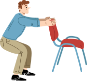 Sit on the edge of chair and place your hands behind your head. Balance the toes lightly on the ground. Slowly lean your torso back towards the chair, and then crunch back up.